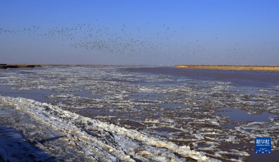 原標(biāo)題:黃河“幾”字彎:候鳥成群伴流凌