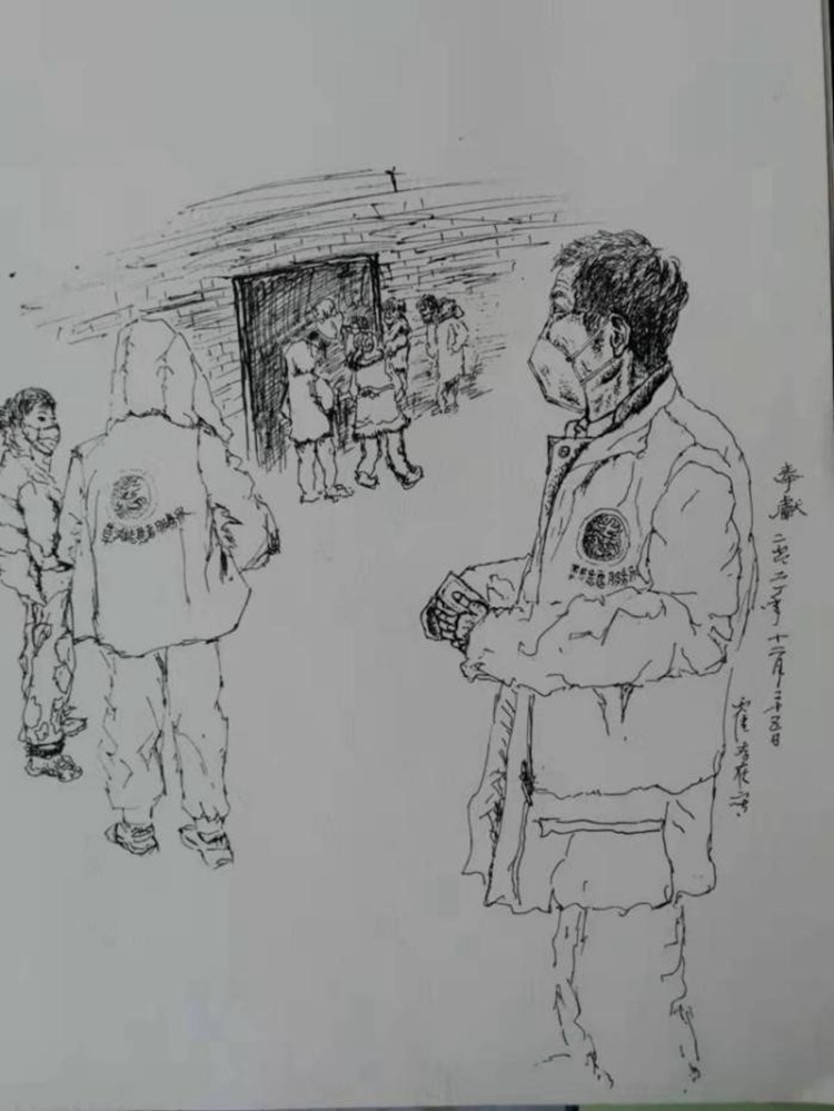 “奉獻(xiàn)”——志愿者為霍家民同志畫(huà)的素描。未央?yún)^(qū)委宣傳部供圖