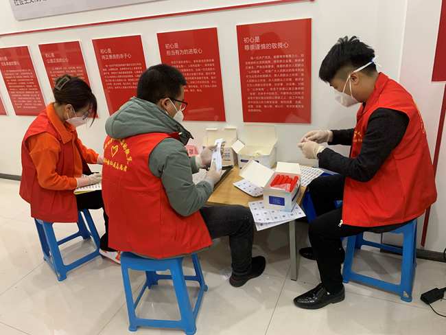 在天福和園社區(qū)5個核酸檢測服務(wù)點都有一大批志愿者積極投身其中,負責(zé)現(xiàn)場秩序的維護和相關(guān)后勤工作。為了避免交叉感染、減少居民排隊時間,志愿者對前來進行核酸檢測的居民進行文明引導(dǎo),提醒大家保持安全距離。同時通過張貼公告、在微信群發(fā)消息、用小喇叭在社區(qū)循環(huán)播放等方式,組織社區(qū)居民按順序檢測,檢測完后不聚集、不交談迅速離開回家。每個角落都能看到身著紅馬甲的志愿者忙碌的身影,盡管防疫志愿服務(wù)可能存在風(fēng)險,盡管天氣寒冷凍的人瑟瑟發(fā)抖,但他們?nèi)匀荒瑘允,懷抱著滿腔的熱情,為居民輸送疫情防控的“安全感”。