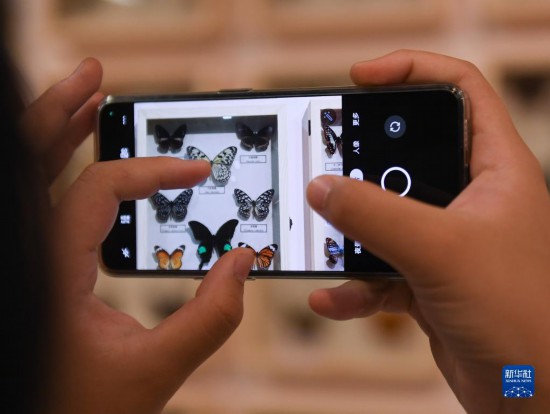 6月9日,一名市民用手機拍攝“24小時博物館”展示的蝴蝶標(biāo)本。