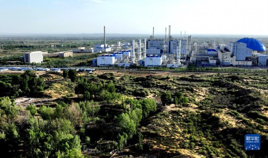 大漠中的陜西未來能源化工有限公司(6月13日攝,無人機(jī)照片)。該公司通過購買榆陽區(qū)小紀(jì)汗林場(chǎng)2527噸碳票,實(shí)現(xiàn)碳達(dá)峰、碳中和目標(biāo)。