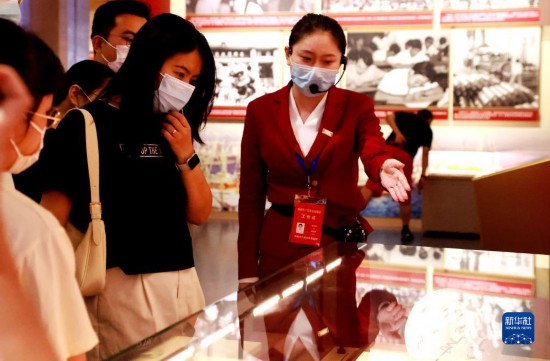 7月3日,參觀者在中國共產(chǎn)黨歷史展覽館內(nèi)聽講解員介紹。