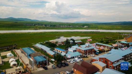 7月26日拍攝的額爾古納市室韋俄羅斯民族鄉(xiāng)風(fēng)光(無人機照片)。