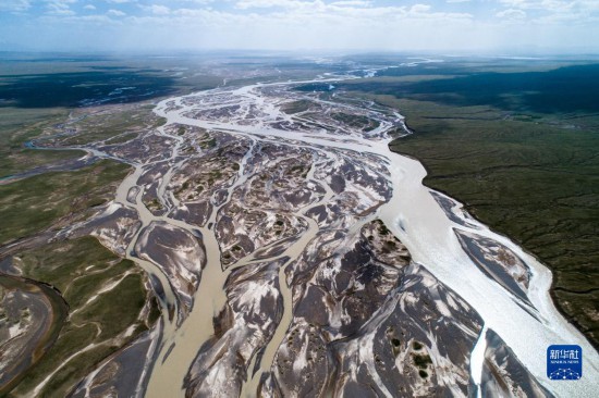 這是7月27日拍攝的長江源區(qū)的囊極巴隴河道,長江正源沱沱河和南源當(dāng)曲在此匯合(無人機照片)。