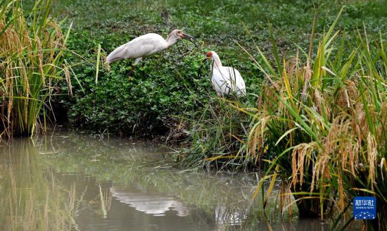 陜西省漢中市洋縣位于秦嶺南麓、漢中盆地東緣,是世界聞名的“朱鹮之鄉(xiāng)”。目前當(dāng)?shù)厣畹闹禧q有7000多只,秋收時節(jié),朱鹮在田間飛舞嬉戲,構(gòu)成一幅自然和諧的田園美景。