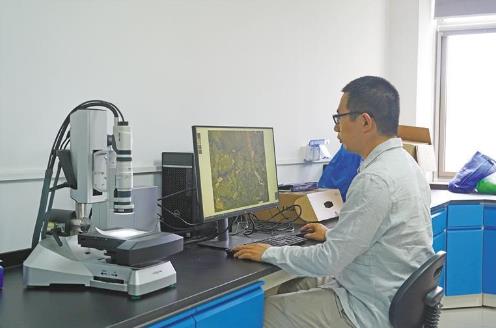 韓賓利用視頻顯微鏡觀察鉛白晶體形貌。中國科學院大學考古系供圖
