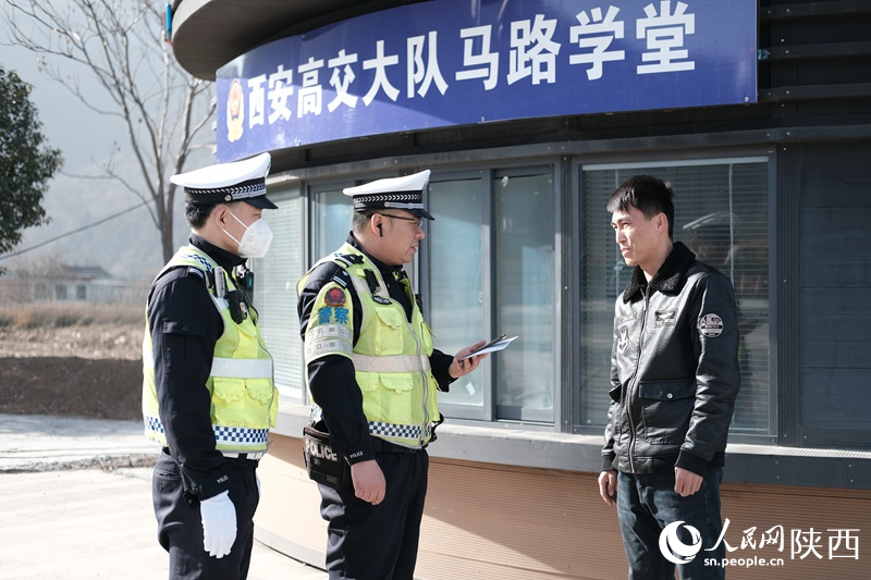賀超對一名違法車輛司機(jī)進(jìn)行交通安全宣傳教育。人民網(wǎng)記者吳超 攝