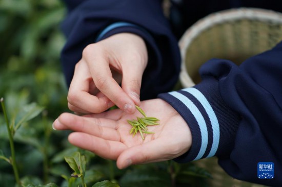 3月29日,紫陽縣職業(yè)教育中心茶葉專業(yè)的學(xué)生在該縣洄水鎮(zhèn)茶稻村采茶。