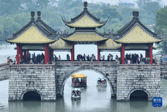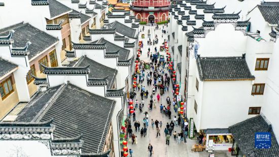 5月3日,游客在浙江省湖州市長(zhǎng)興縣龍之夢(mèng)太湖古鎮(zhèn)景區(qū)游玩(無(wú)人機(jī)照片)。