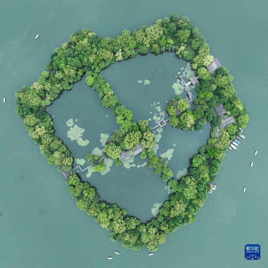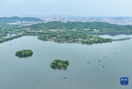 5月3日,游客在杭州西湖乘船游玩(無(wú)人機(jī)照片)。