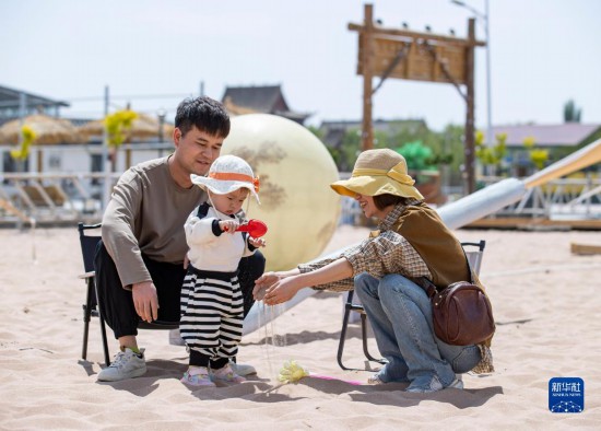5月3日,游客在天津市濱海新區(qū)東疆親海公園游玩。