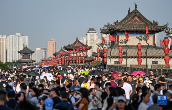 4月30日,游客在西安城墻景區(qū)參觀游覽。