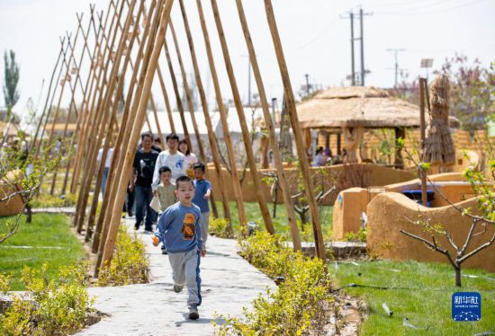 5月3日,游客在寧夏靈武市崇興鎮(zhèn)中渠村游玩。