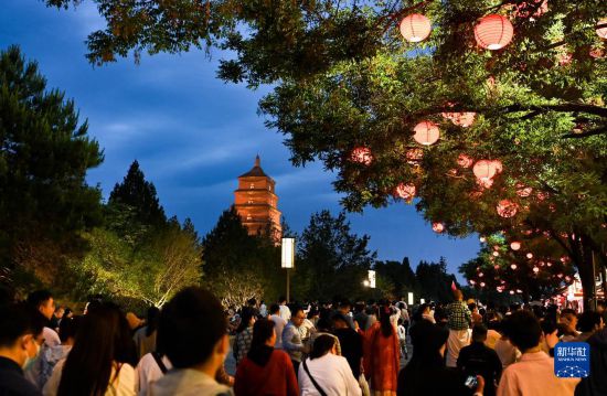 5月1日,游客在西安大雁塔文化休閑景區(qū)參觀游覽。