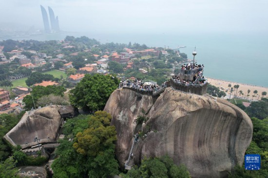 5月3日,游客在福建廈門(mén)鼓浪嶼日光巖游玩(無(wú)人機(jī)照片)。