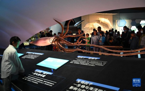 5月3日,游客在位于天津市濱海新區(qū)的國(guó)家海洋博物館“今日海洋”展廳參觀。