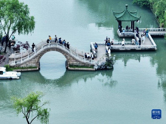 5月3日,游客在江蘇揚(yáng)州瘦西湖風(fēng)景區(qū)游玩(無(wú)人機(jī)照片)。