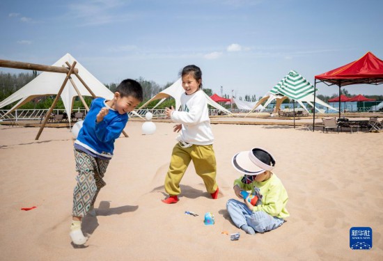 5月3日,游客在寧夏靈武市郝家橋鎮(zhèn)胡家堡村的露營(yíng)地游玩。