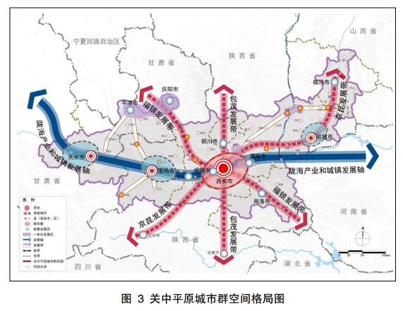 關(guān)中平原城市群空間格局圖。 圖片來源:《關(guān)中平原城市群發(fā)展規(guī)劃》