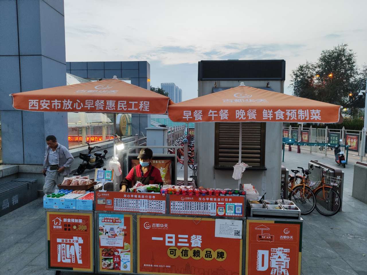 像這樣的早餐網(wǎng)點(diǎn),在西安市共有1586個(gè)。17年間,無(wú)論嚴(yán)寒酷熱、刮風(fēng)下雨,每到早上7點(diǎn)多,準(zhǔn)時(shí)出現(xiàn)。每天為近30萬(wàn)人提供著安全衛(wèi)生、營(yíng)養(yǎng)健康、價(jià)格實(shí)惠、方便快捷的放心早餐。背街小巷里、繁華天橋下、學(xué)校門口前......市民幾乎一出門就能買到。
