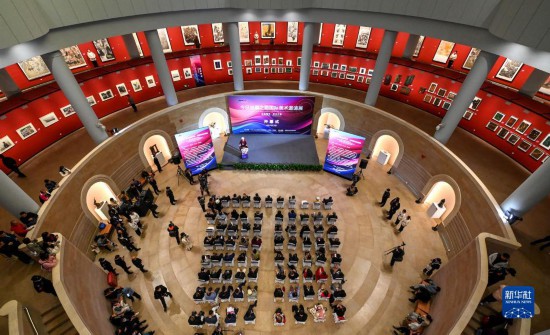 這是10月24日拍攝的“今日絲綢之路國際美術(shù)邀請展”開幕式。