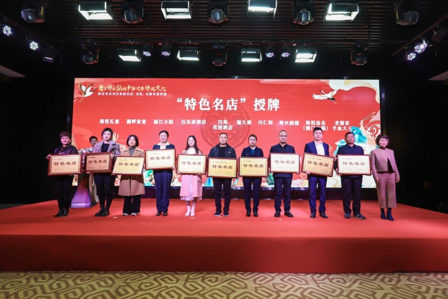 本次活動邀請中國食文化研究會副會長樊建國、陜西省餐飲業(yè)商會會長聶磊等10位專家評審,圍繞線上、線下相結(jié)合的方式,經(jīng)過科學(xué)嚴謹?shù)脑u定標準、公平公正的評定流程,全渠道挖掘未央?yún)^(qū)特色餐飲企業(yè)。在現(xiàn)場,主辦方對評選而出的“特色名店”“未央名吃”“金牌名廚”授獎授牌。其中,獲得“特色名店”授牌的是湖畔家宴、一方情懷、漢樂府酒店、西安市漢長安城保護區(qū)漢苑花園酒店、璟悅禮宴、西安市未央?yún)^(qū)源久粥食府、川仁和餐飲、粵興酒樓、海悅湯皇(澳門火鍋)、老謝家羊血大王;獲得“未央名吃”頒獎的是劉記秦鎮(zhèn)米皮、肆海佳宴的千島湖魚頭、黃山酒家徽香閣的黃山臭鱖魚、麥里金的桃酥的蜂蜜蛋糕、羊瑞堂的陜北鐵鍋燉小公羊、雷記肉夾饃的臘汁肉夾饃、東家匯豬蹄坊的鹵豬蹄、西安·碾稻院燒雞、段生記肉丸胡辣湯、賈家水盆燒烤的水盆泡饃;獲得“金牌名廚”的是黃海酒店張顯、漢樂府酒店王紅艷、威爾佳酒店劉強、砂尊粵舍李壽、肆海佳宴楊東凡、鹽池羊肉魏玉堂、湘約東風(fēng)號湘菜館楊成生、金稻軒何志飛、盛唐宴張俊輝、家和宴魏寧。