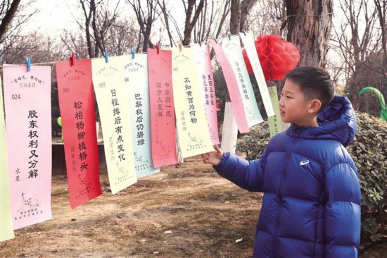 1月22日,一位小學(xué)生在西安植物園參加“植謎古韻迎新春”猜謎活動(dòng)。孫亞婷攝