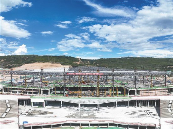 8月15日,在27臺(tái)液壓油缸的共同作用下,西安東站屋蓋鋼結(jié)構(gòu)桁架提升工程啟動(dòng),站房建設(shè)進(jìn)度不斷加快。圖為西安東站項(xiàng)目施工現(xiàn)場(chǎng)。